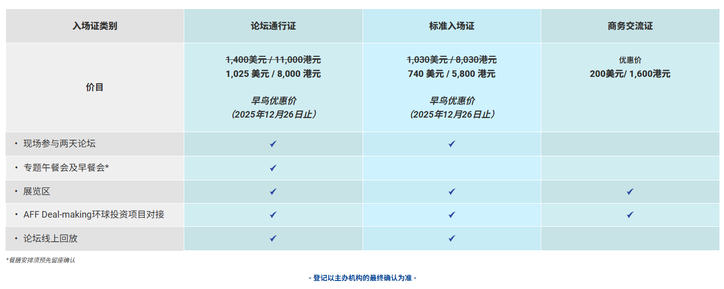 香港特区政府 贸发局主办 -- 亚洲金融论坛2026 -- 含初创展览及投资配对环节